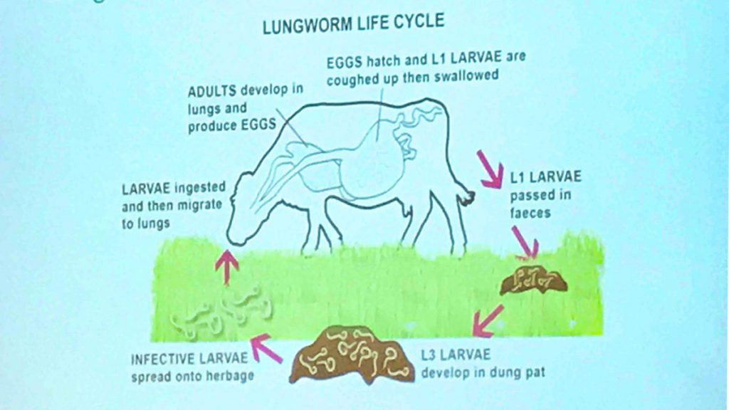 “Larvae is then coughed up and swallowed and these come out in the dung of animals on to pasture,” she added. “Lung worms take a much shorter time frame for the larvae to develop into an infective stage – it takes approximately one week.”