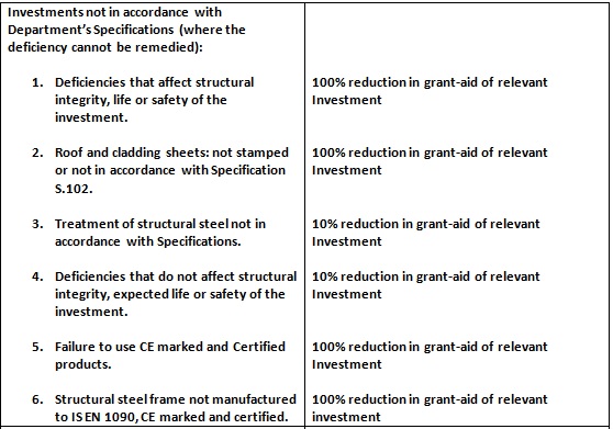 An over-claim of investment(s) dimension/quantities by more than 25% will result in a 100% reduction in grant aid for relevant investment(s).
