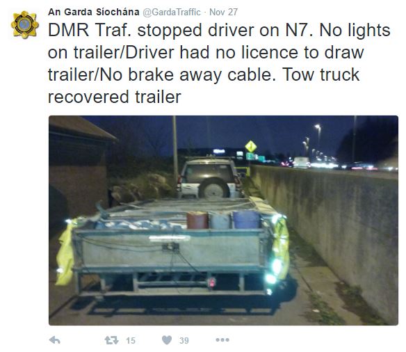 Meanwhile, last weekend Garda in the Co. Dublin area stopped a driver of a Toyota Landcruiser jeep due to a number of issues with the trailer being towed.