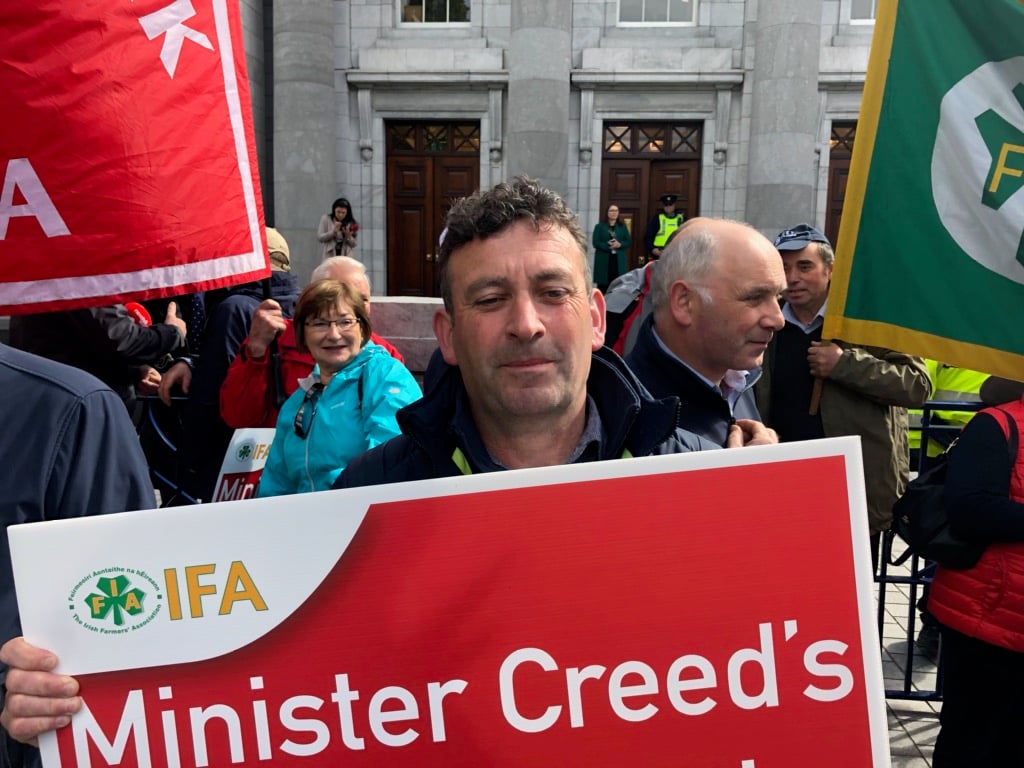 The chairman of the Meath IFA branch, John Curran, said: “I’m here to represent the beef farmers and farming families who have been suffering losses incurred to their enterprises as a result of the beef trade.