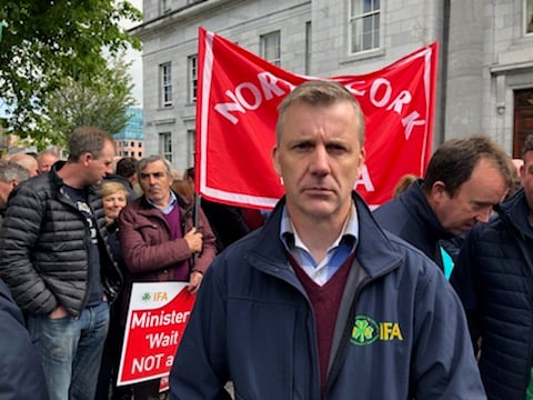 Close to 1,000 members of the Irish Farmers’ Association (IFA) gathered outside Cork City Hall today, Wednesday, May 1, to protest in opposition to the Government’s “lack of action” to protect the beef sector from Brexit.