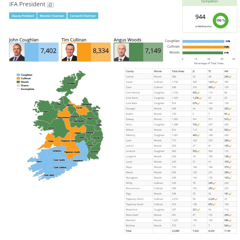 As the count in the Irish Farmers’ Association’s (IFA’s) 2019 presidential elections continues into the evening, the results of the first count have revealed the total turnout in the association’s 2019 election.