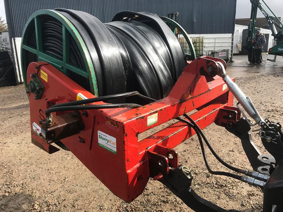 A 2012 AgQuip umbilical dribble bar slurry system, along with a 2011 Vogelsang pump and SlurryKat front-mounted reel, sold for €15,800 plus VAT.