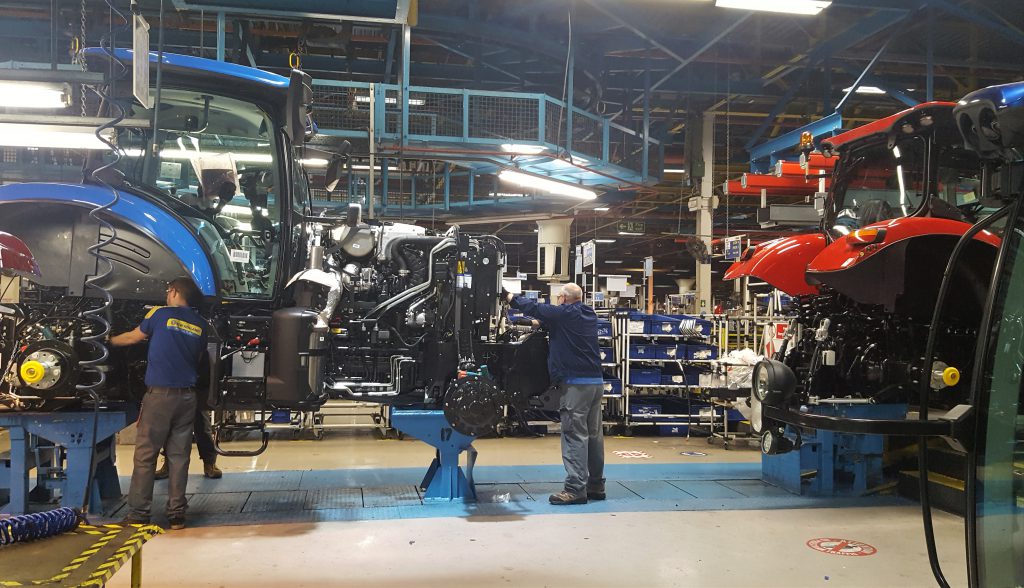Basildon is where T6 (120-175hp) and T7 (176-270hp) series tractors are built. Interestingly, some equivalent Case IH models are built there too (though not units destined for Europe; those are built in St. Valentin, Austria – the historic home of the Steyr brand).