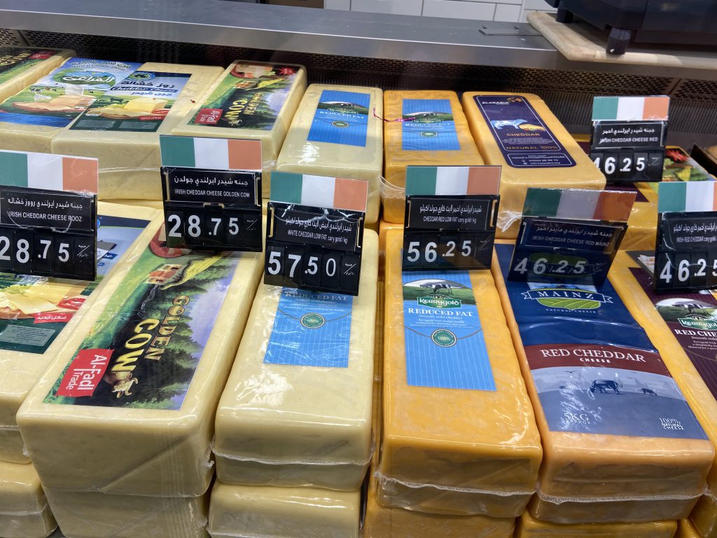 During the store visit, Irish cheese (both white and red cheddar) was spotted, interestingly with some reduced fat options also. There were also a number of other Egyptian brands carrying the Irish flag, with selected products on promotion.