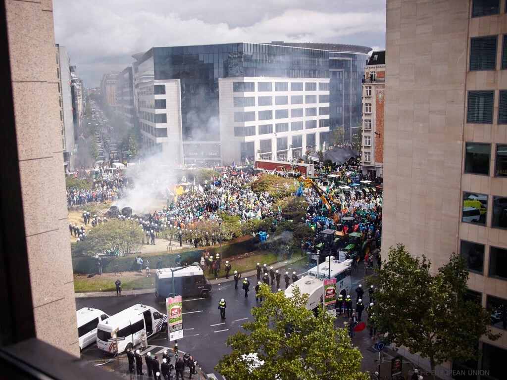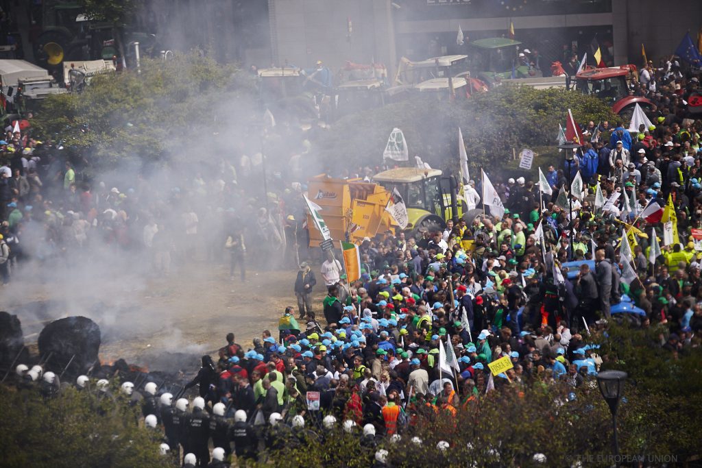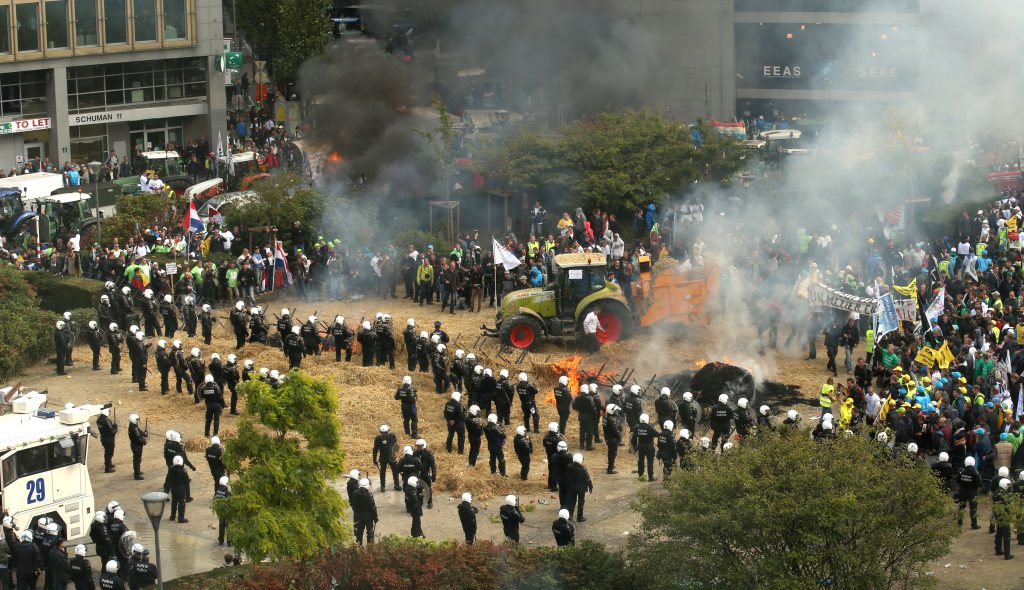 Over 6,000 angry farmers have gathered from across Europe to a mass Brussels protest in advance of key meeting of European Agriculture Ministers.