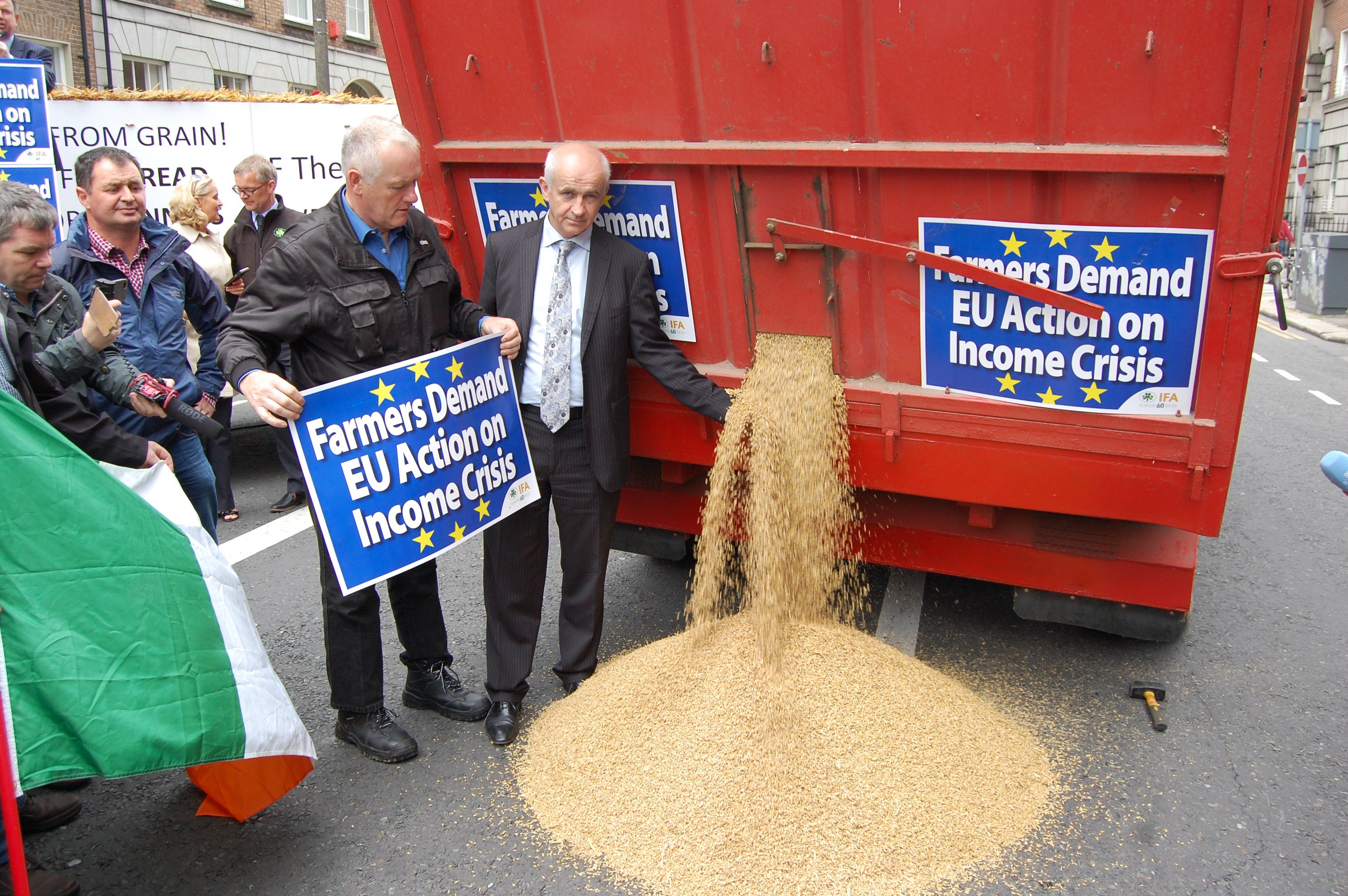 Grain was also spilled onto Mount Street, where the protest took place, with Eddie Downey opening a truck of grain.