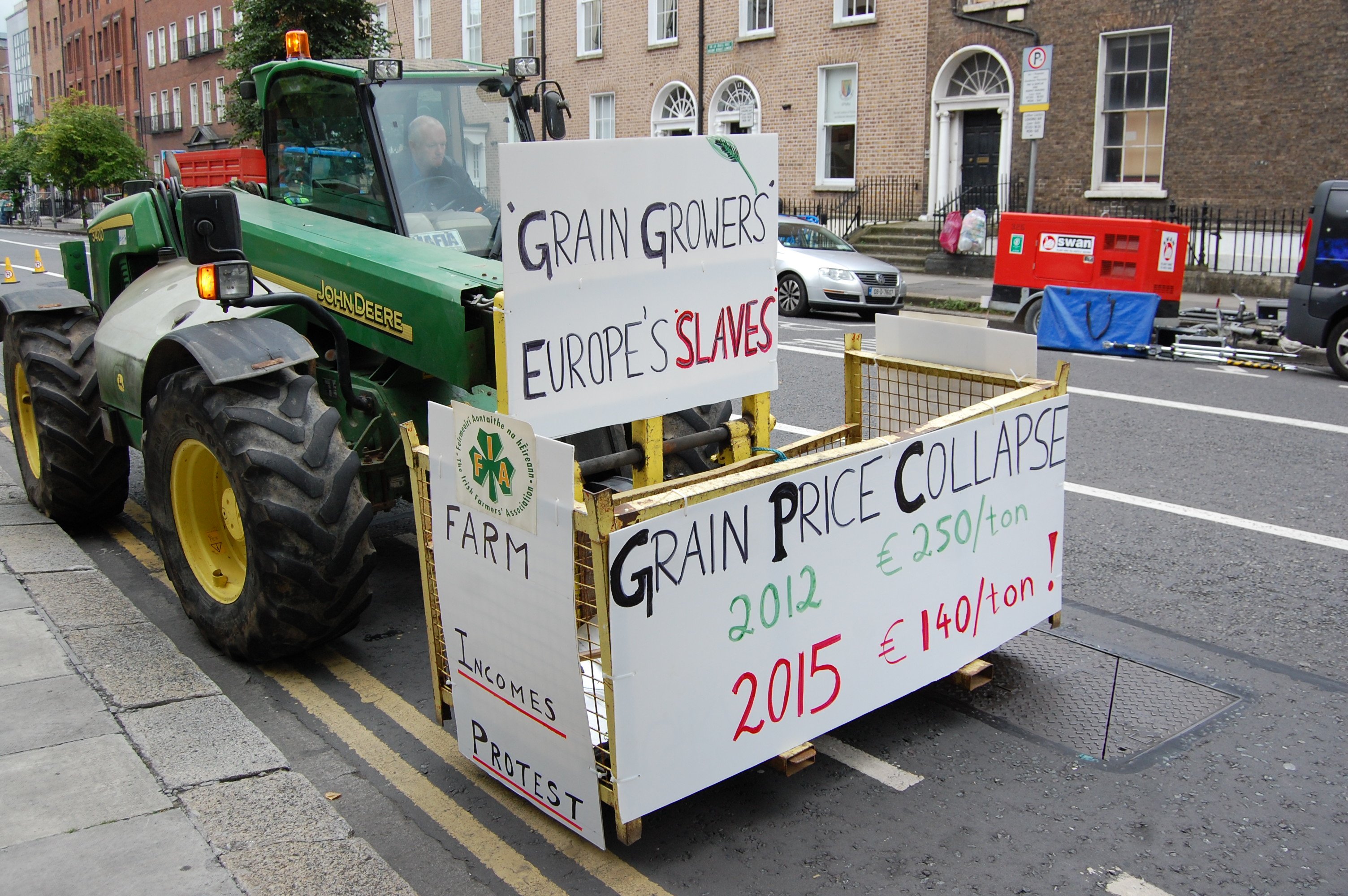 One of the may IFA protest signs farmers had included the one pictured below with farmers saying that grain growers are Europe’s slaves.