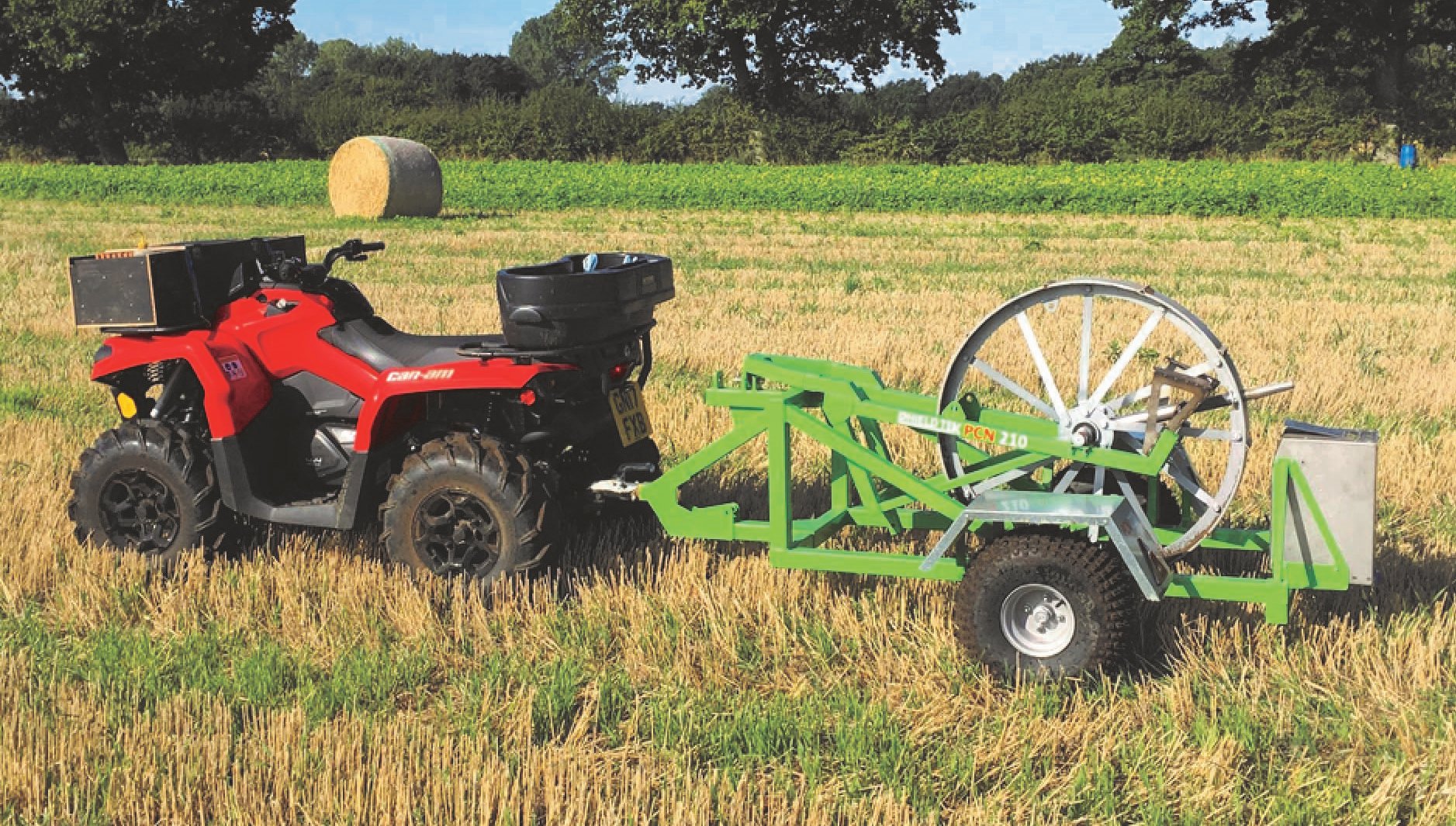 The PCN 210 extracts cores at around 3m intervals. The machine can be towed behind a quad at speeds up to 16kph. A spring-loaded auger is pushed into the soil to pick up a core.