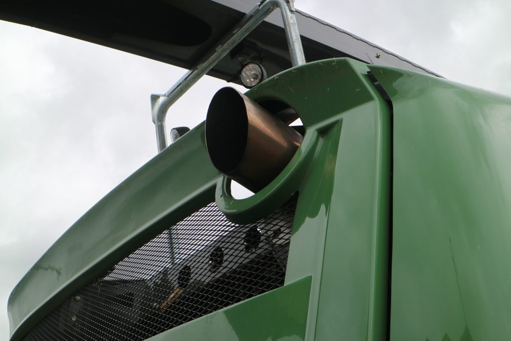 Having initially driven through the gates into McElderrys’ yard and seen the harvester, it certainly does ooze presence. The large side panels appear hunched over the wheels and its X5 cab is perched high at the front – with light clusters aplenty. It certainly is a striking machine.
