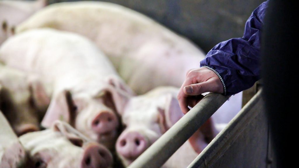 The crews used breathing apparatus, water and foam jets to put out the fire at the pig farm.