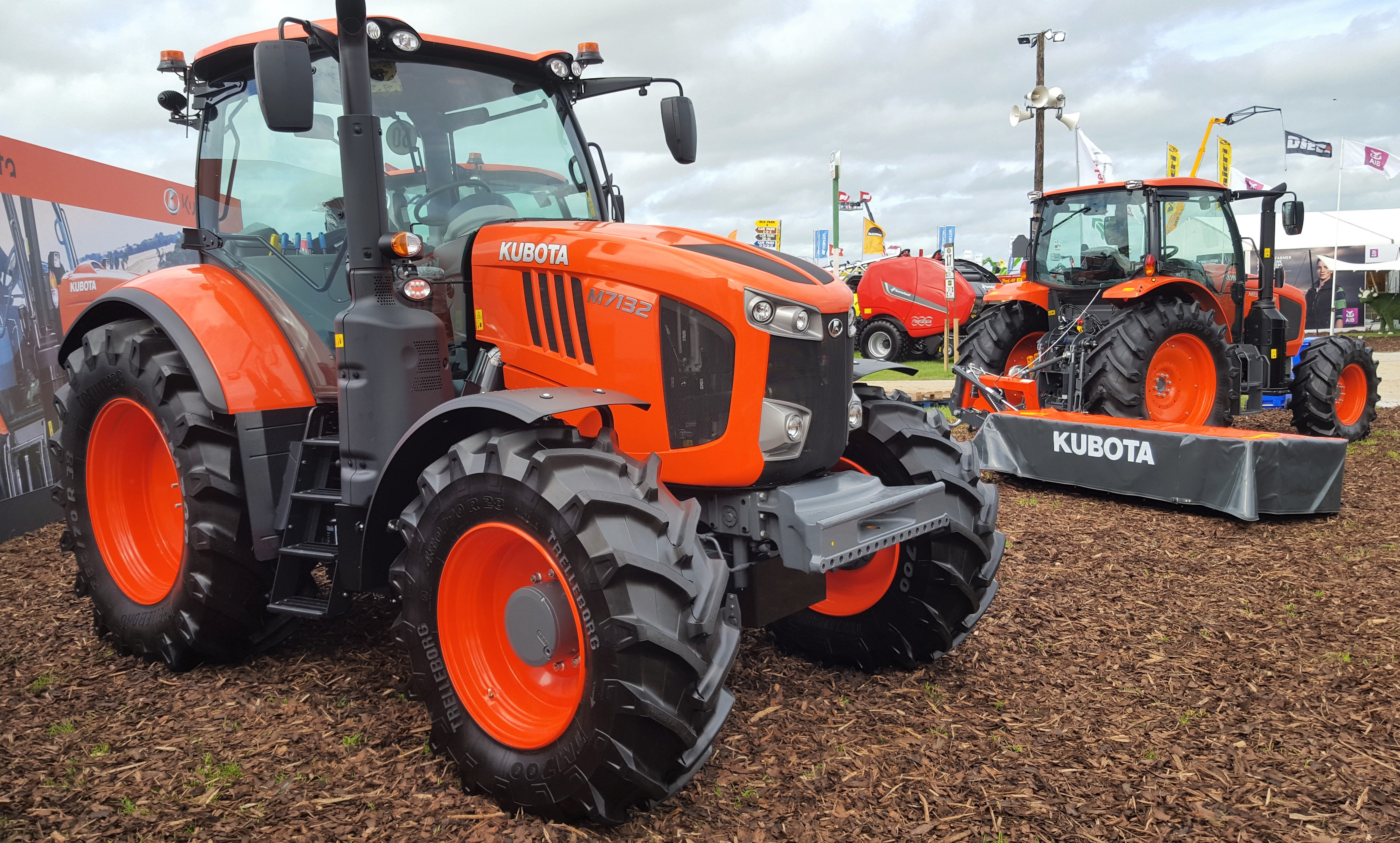 The full range of agricultural implements includes a selection of disc mowers, rakes, tedders, flail choppers and fertiliser spreaders; these are manufactured and distributed for Kubota by Kverneland Group.