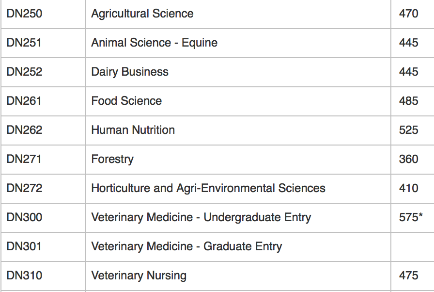 This year the first round requirement for Agricultural Science at UCD is 470 – up from 465 in the first round last year.
