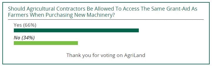 The poll received in excess of 1,300 responses, with 34% opposed to contractors having access to the same grant-aid as farmers.