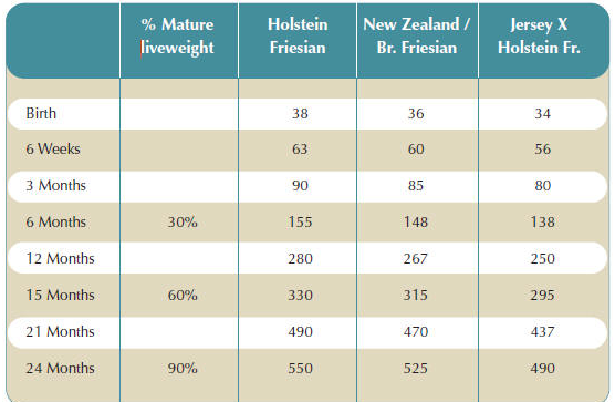 The Teagasc table below illustrates the key bodyweight targets for maiden heifers at key intervals. Breed influences are recognised within.