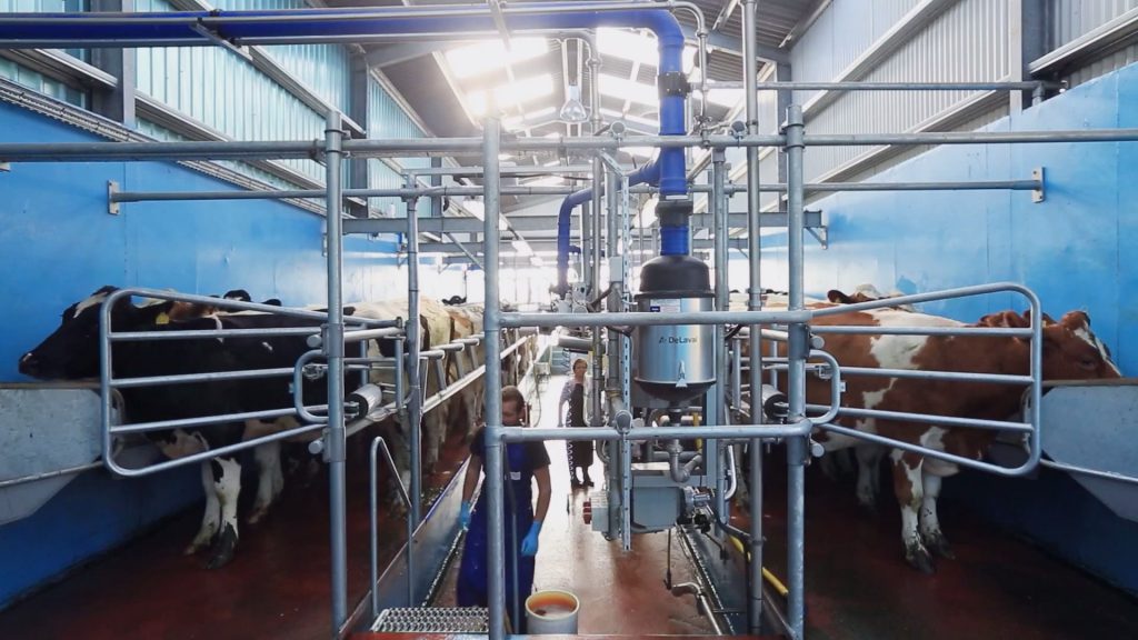 Giving a run through of his milking routine, Dwan said: “As the cows are walking in, they’re pre-sprayed, dried, clusters put on and then sprayed after milking as they’re going out.”