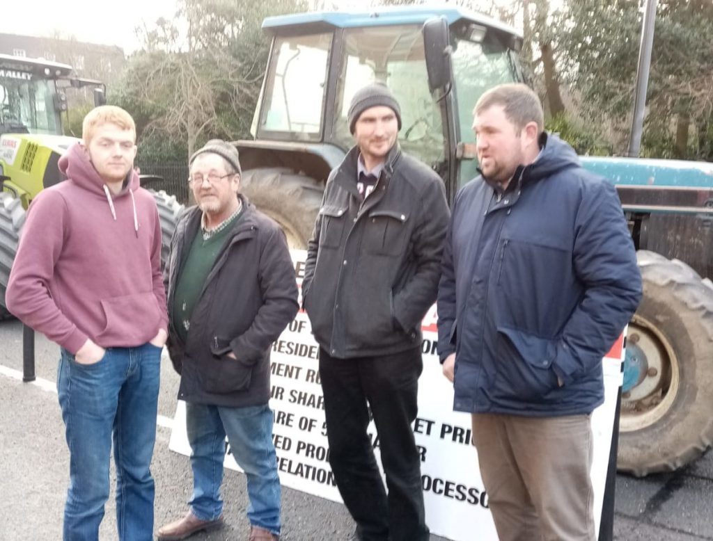About 15 tractors are at the protest, with a number of 4X4s on site, the demonstrator claimed, with more protesters on the way to take over from farmers who need to go home to feed cattle.
