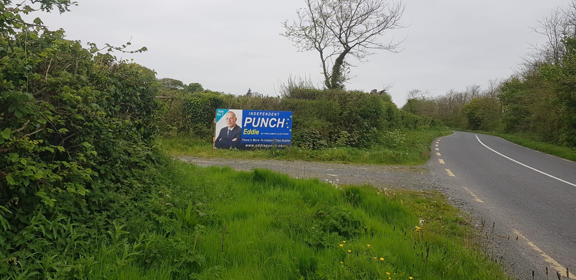 Eddie Punch, who is aiming for a seat for the Ireland South constituency in the European Parliament elections, told Agriland that he was "disappointed" and "surprised" when an election billboard posted by a roadside in Co. Waterford went missing soon after it was put up early this morning.