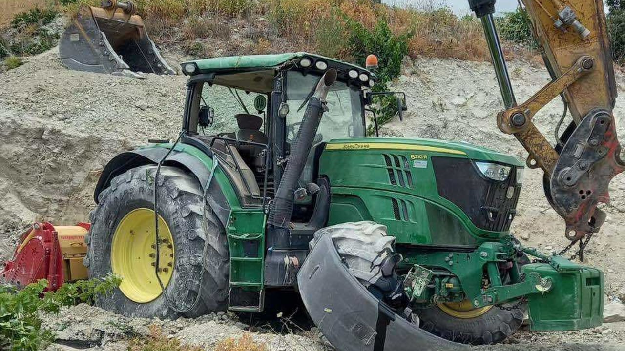The sturdy John Deere 6210 R was a total write-off. The country manager for Greece and Cyprus called immediately, making sure everyone was okay. Only then, he learned about the immediate risk this incident put the winery at.