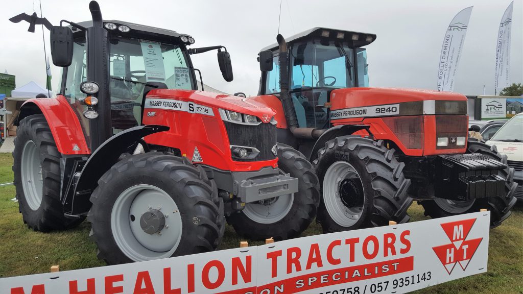 It was on the stand of local dealer M Healion Tractors (of Arden, Tullamore). It’s pictured (above) alongside a considerably more modern (150/175hp) 7715 S.