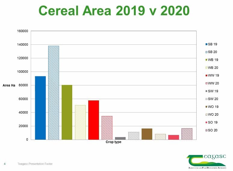 For example, wet weather reduced the winter cereal area this season and Shay outlined out of a total of approximately 280,000ha of combinable crops 140,000ha were planted with spring barley.