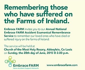 One of the high points of the service will be the reading out of names of people who died in farm accidents and Embrace Farm have asked that those who want their loved one’s names read out to contact them.