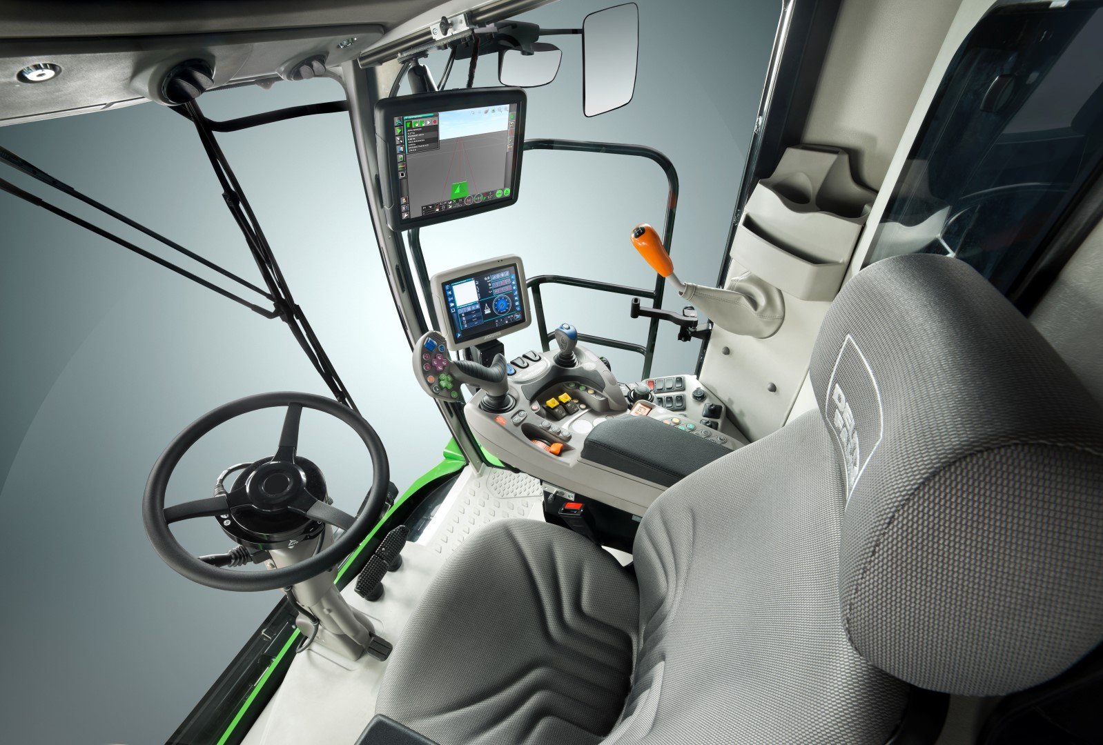 All controls are now integrated in the armrest of the new, extra-large seat; these are based on the control layout that is familiar to operators of the latest, high-horsepower Deutz-Fahr tractors.