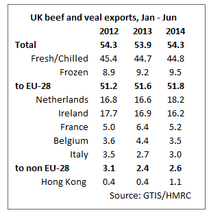 Exports of fifth quarter products are up over 20% on the year to 18,700 tonnes. Shipments to other EU markets are 14% higher compared with the first six months of 2013, largely fuelled by growing demand in Ireland, the Netherlands and Poland.