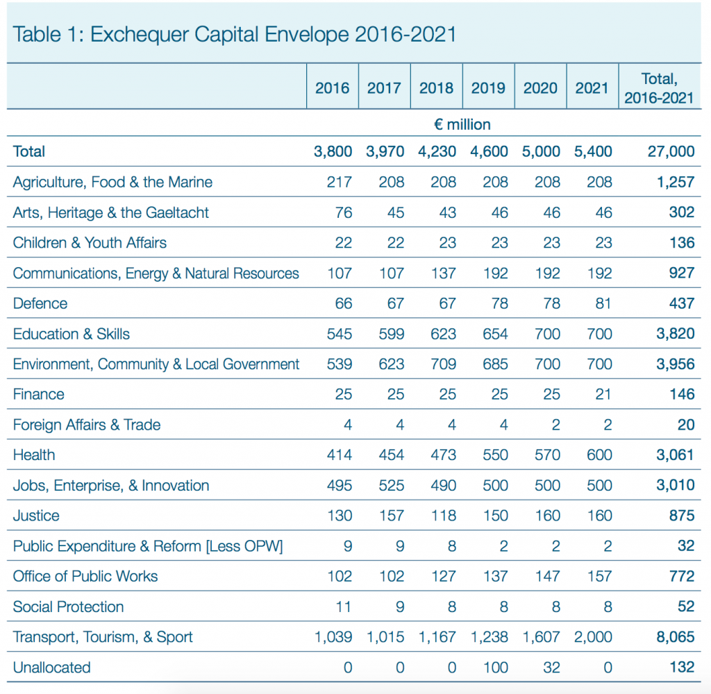 The Capital Plan combines direct investment the Exchequer of €27 billion.