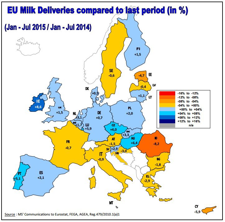 The slight increase in EU milk deliveries in 2015 (at around 1%) hides significant differences in the development of milk production in the EU Member States, according to the European Commission’s latest analysis of the sector.
