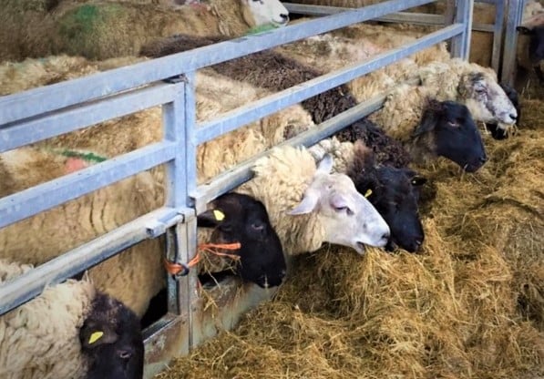“The ewes are fed concentrates in the last eight weeks of the gestation period. Each week, we gradually build up the amount of meal we feed each batch, until a week or two before lambing.”