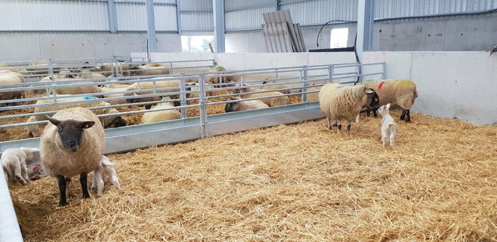 According to Teagasc, one individual pen should be allocated between six ewes over the lambing period. The dimensions of an individual pen should be 1.5m long and 1.5m wide.
