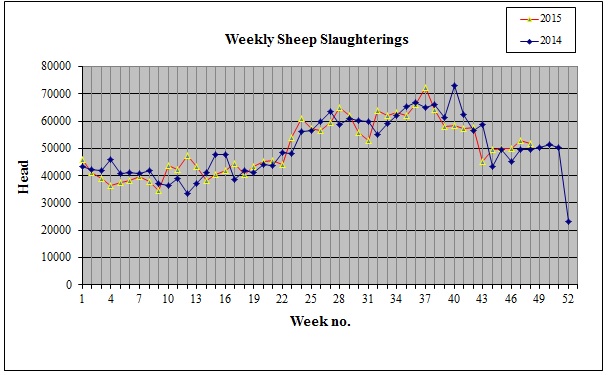 On a weekly basis, for the week ending December 6, 2015 some 51,629 sheep went to the factories.