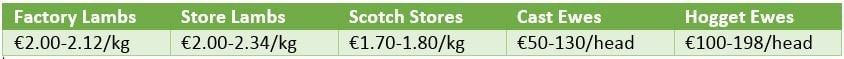 The demand for store lambs was also matched for the factory lots which sold from €2.00-2.10/kg, said McCarthy.