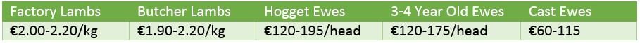 There was also a strong trade for Cheviot type hogget ewes, with the top lot selling for €195/head, other lots sold from €140 upwards.