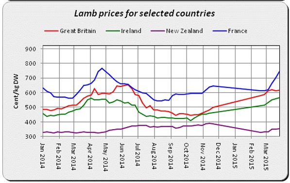 Supplies at sheep export meat plants for the week ending April 4 stood at around 43,000 head which was 17% higher than the corresponding week in 2014.