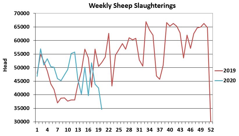 Figures from the Department of Agriculture show that the hogget throughput for the week ending May 17 was almost half of what it was for the previous week.