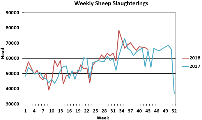 Official figures also show that just over 2.46 million sheep have been slaughtered up to and including the week ending October 28 this year.