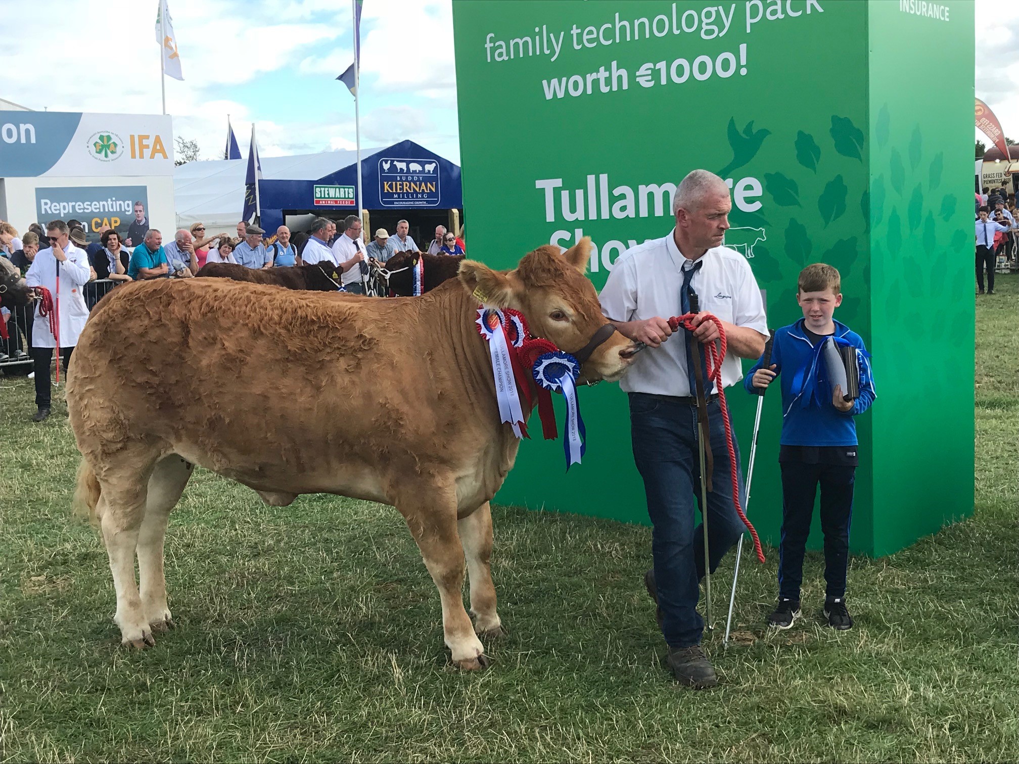 The FBD National Livestock Show Limousin Champion ribbon was won by Carrickmore Mickeyfinn ET, owned by the Connell Brothers from Newcastle, Oldcastle, Co. Meath.