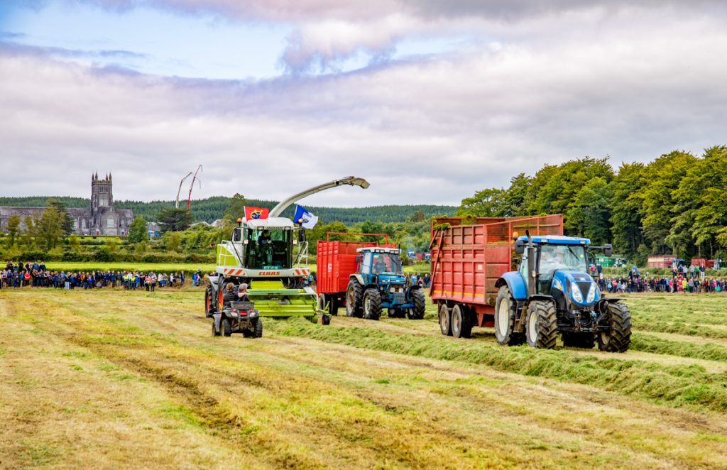 The all-female crew mowed the fields on the occasion. As the afternoon set in, the women fired up two self-propelled forage harvesters – which were sponsored by Timmy McCarthy, Carrigtoohill and O’Grady Bros, Toorneena – accompanied by an army of tractors and trailers. The vintage men were also in action in their fields.
