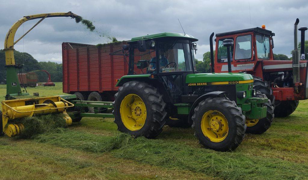 Doors are optional! This ‘original’ Ford 5000 was part of the fleet of equipment needed to ferry grass away from the harvesters – an army of single-chop, double-chop and precision-chop machines