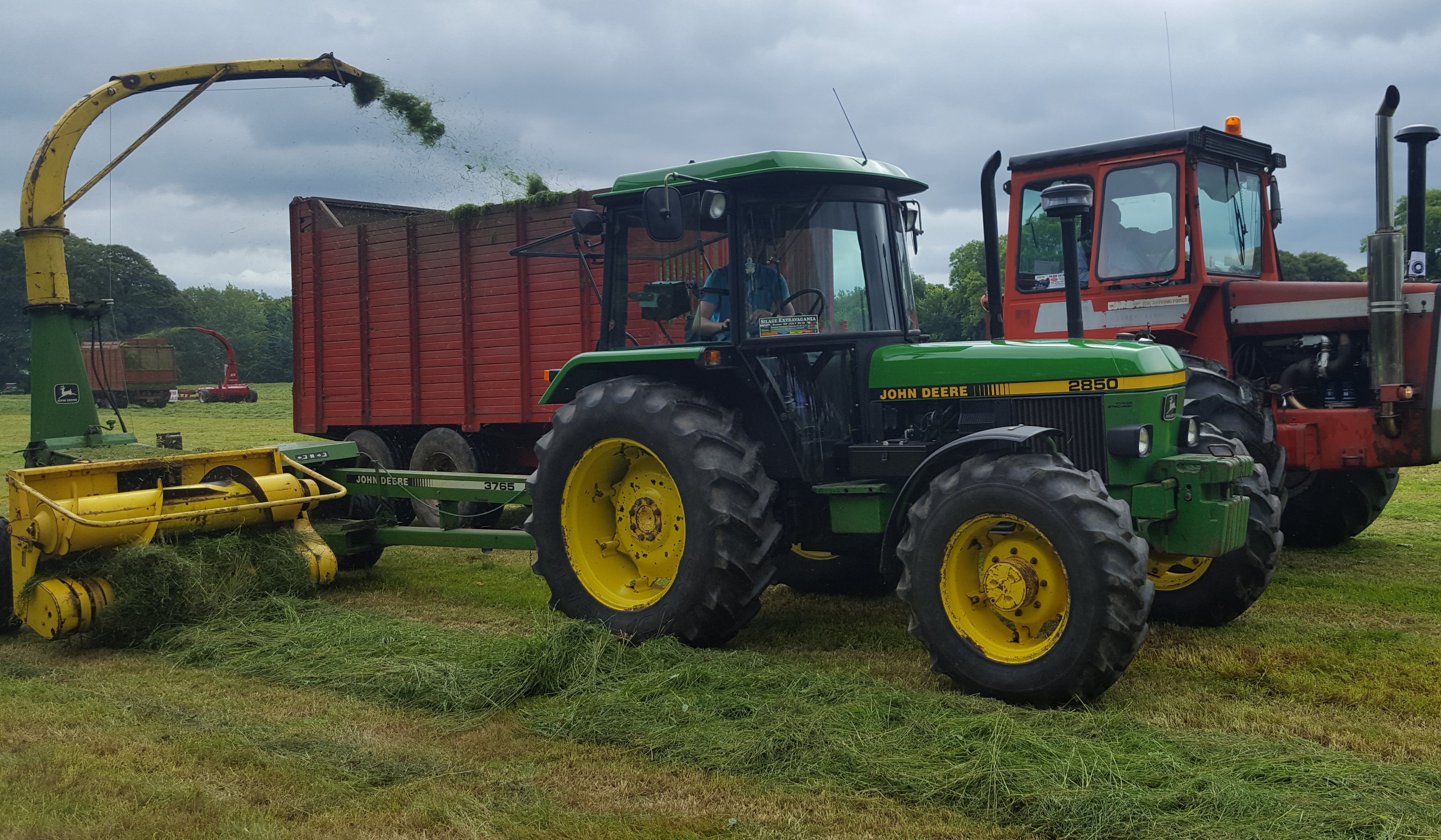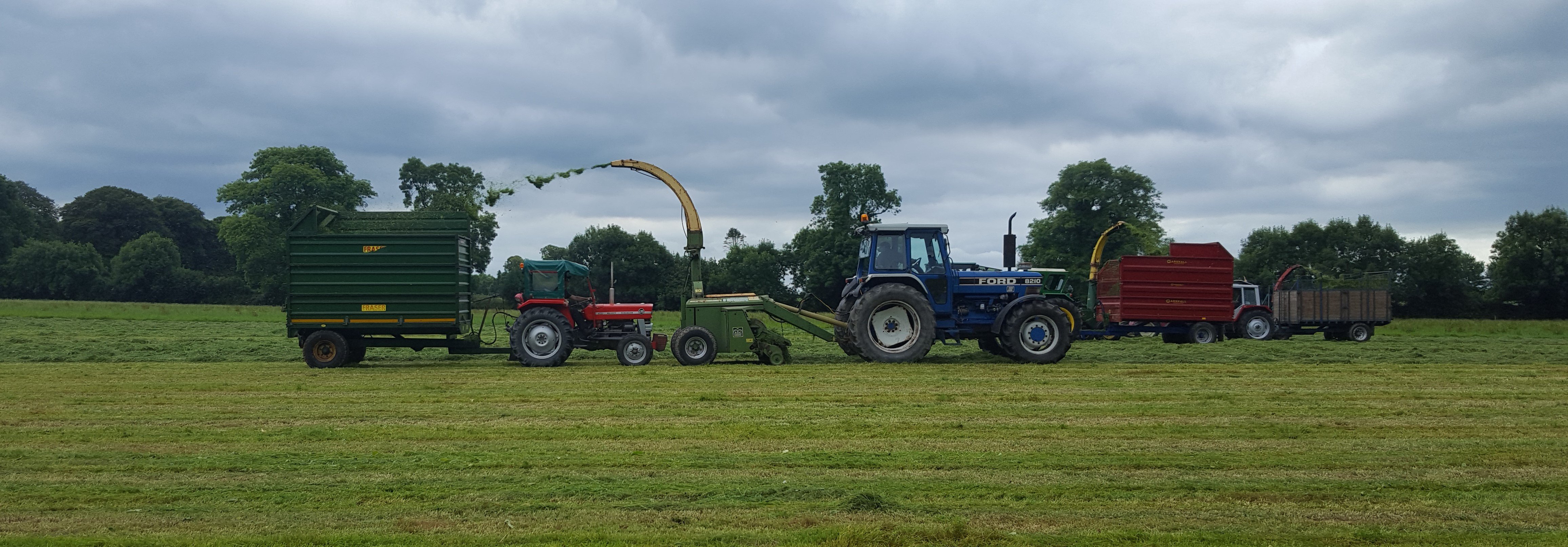 The machines, where possible, all worked together in the same field – with parts of each field having been mown in advance to facilitate the precision-chop harvesters. There was no need to rake two or three swaths into one; these older machines were more than content with a single windrow.