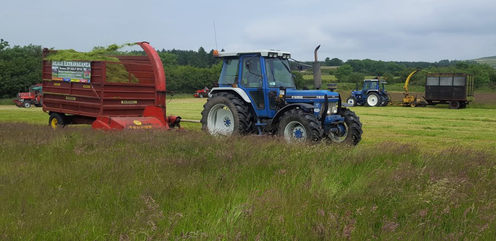 Also present (pictured below) was an ageing Taarup double-chop contraption; it’s coupled to a 7810 – once a very popular tractor in Ford’s line-up. This rig, including the Marshall trailer, is owned by Kieran O’Donoghue from Mitchelstown (Co. Cork).