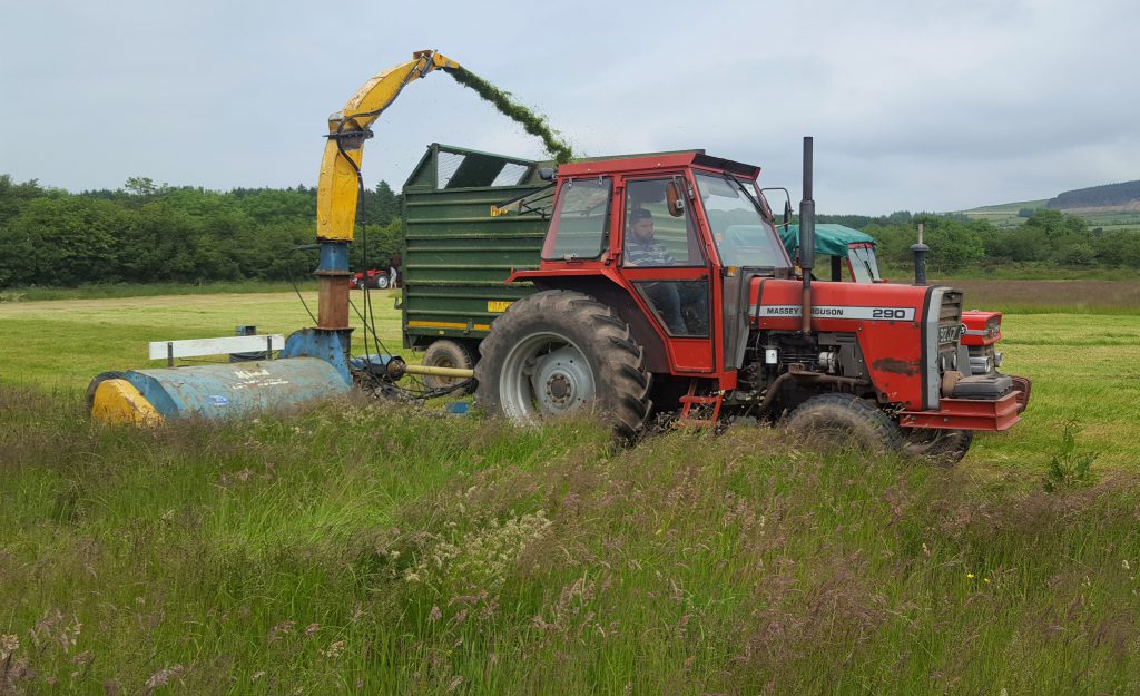 Pictured below is yet another double-chop harvester – this time a Kidd machine. It’s mated with a Massey Ferguson (MF) 290. This outfit is owned by Dave Keegan from Carrigtwohill (Co. Cork).