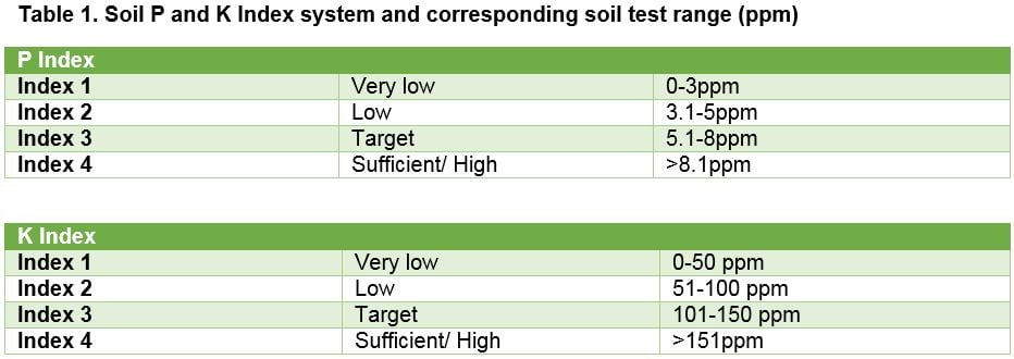 The process of identifying fields requiring P and K from soil tests uses a scale of 1-4. Across both nutrients Index 1 and 2 soils will have the greatest response to P and K applications.
