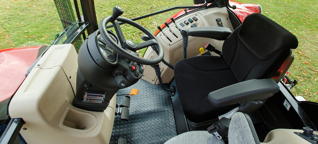 The gearbox is a simple 12F 12R affair, with a ‘mechanical’ forward/reverse shuttle. Standard tyre sizes are 460/85 R34 at the rear and 360/85 R24 up front. The tractor, with no additional ballast on board, weighs 3.8t.