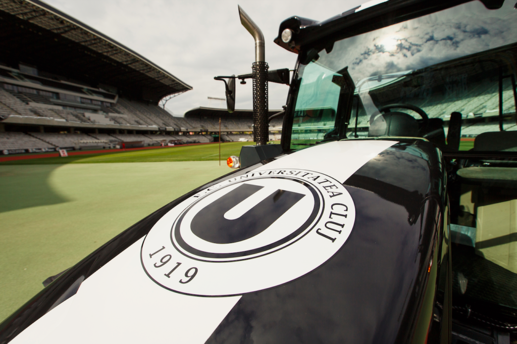 FC Universitatea Cluj traditionally plays in black and white kits/liveries – hence the special-edition tractor’s distinctive colour scheme.