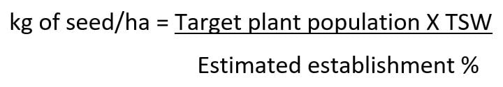 Calculating seed rate is carried out as it is for a cereal crop. Farmers must have the target plant population; the estimated establishment percentage and the thousand seed weight (TSW).