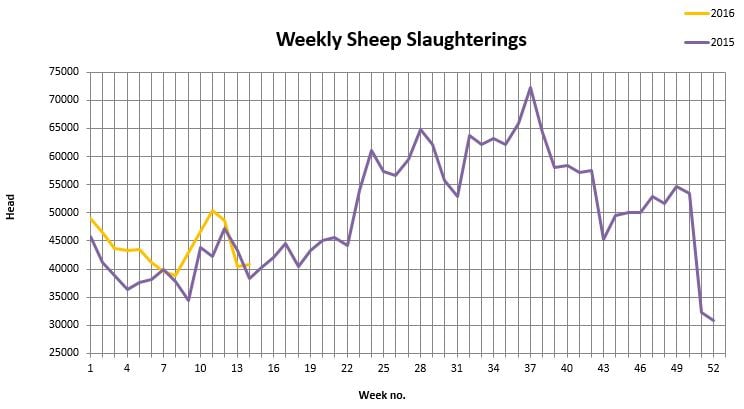 To the week ending April 10, there had been 565,117 sheep slaughtered in Department approved sheepmeat export plants, which is 9% higher than the corresponding time in 2015.