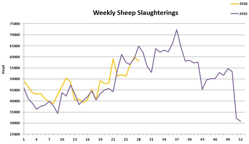 However, spring lamb throughput continues to lag 5% behind 2015 levels, with just 461,356 slaughtered to the week ending July 17.